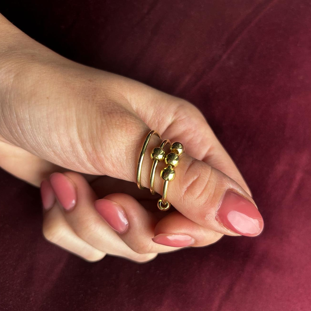 Pierścionki posiadają subtelne, obrotowe elementy, którymi możesz poruszać w chwilach napięcia. Dzięki temu Twoje dłonie i paznokcie pozostają zadbane, a stres znika w dyskretny sposób.